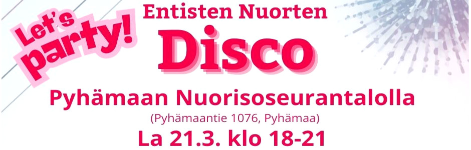Entisten nuorten disco. Pyhämaan Nuorisoseurantalon lauantai-illassa 21.3.2026 välkkyvät...