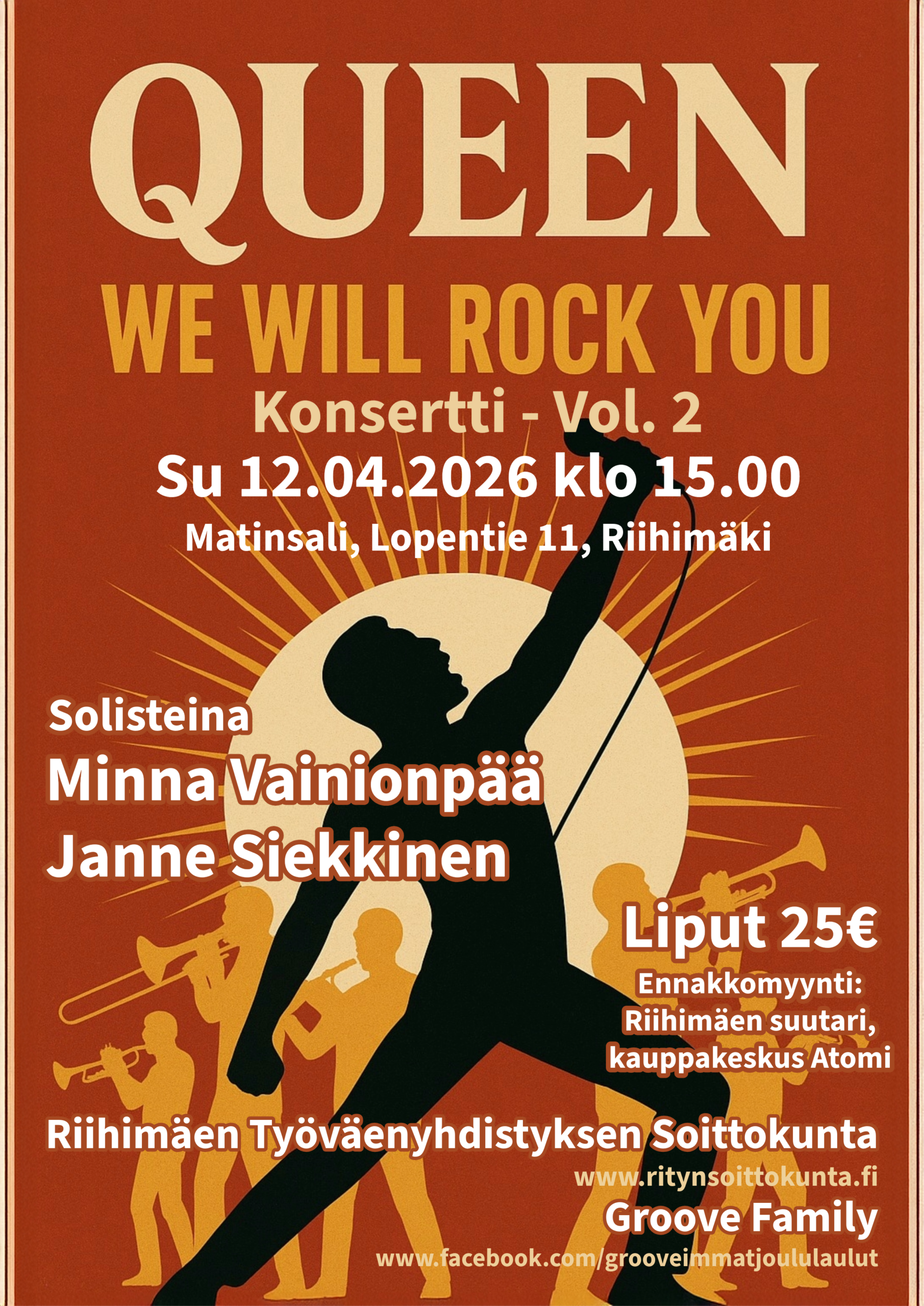 Riihimäen Ty:n soittokunta järjestää yhteistyössä Groove familyn, sekä laulajien Minna...