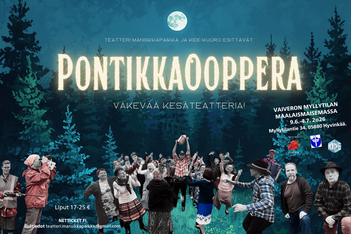 Pontikkaooppera on Teatteri Mansikkapaikan 10-vuotisjuhlavuoden väkevä kesäteatteriproduktio,...