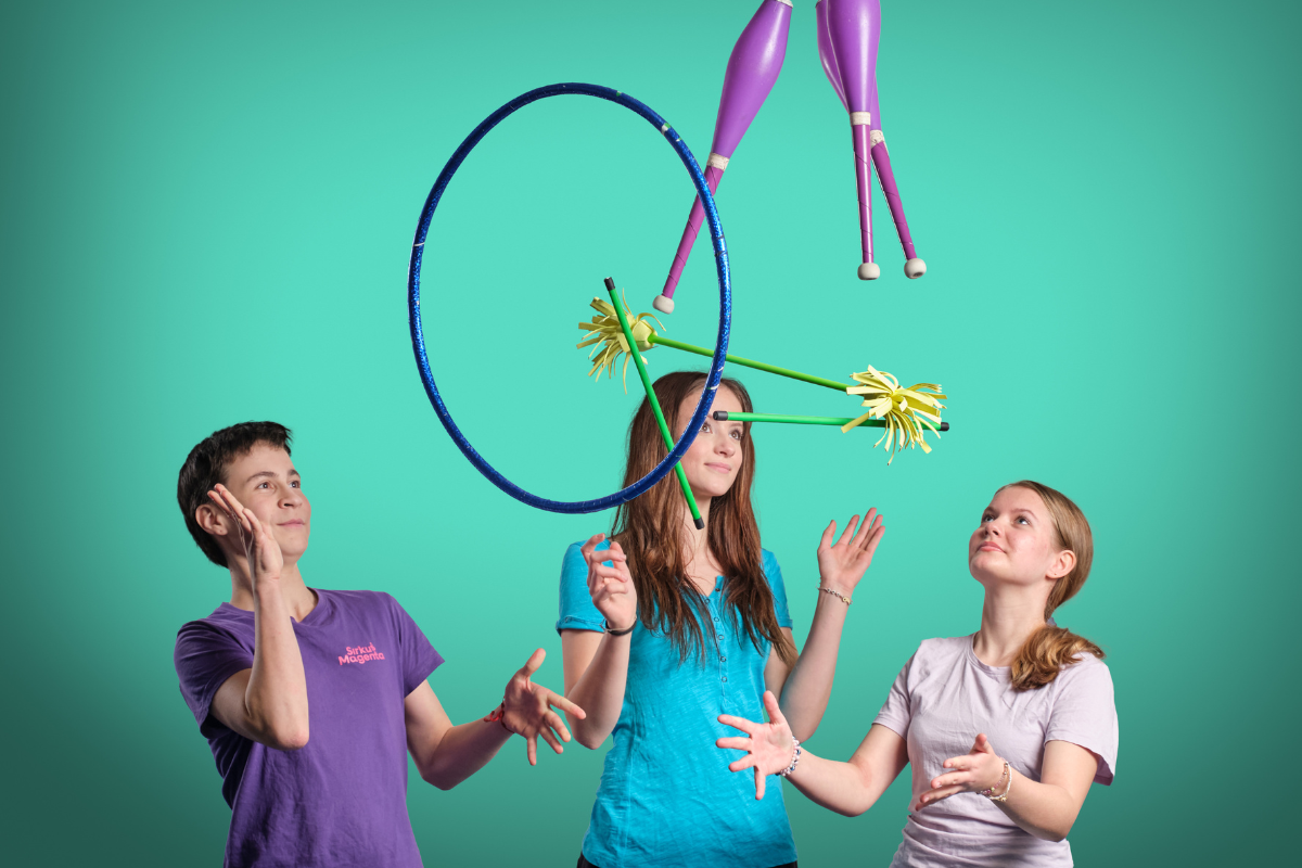 Sirkushulinoissa koko perhe pääsee kokeilemaan eri lajeja ja välineitä sirkusohjaajien...