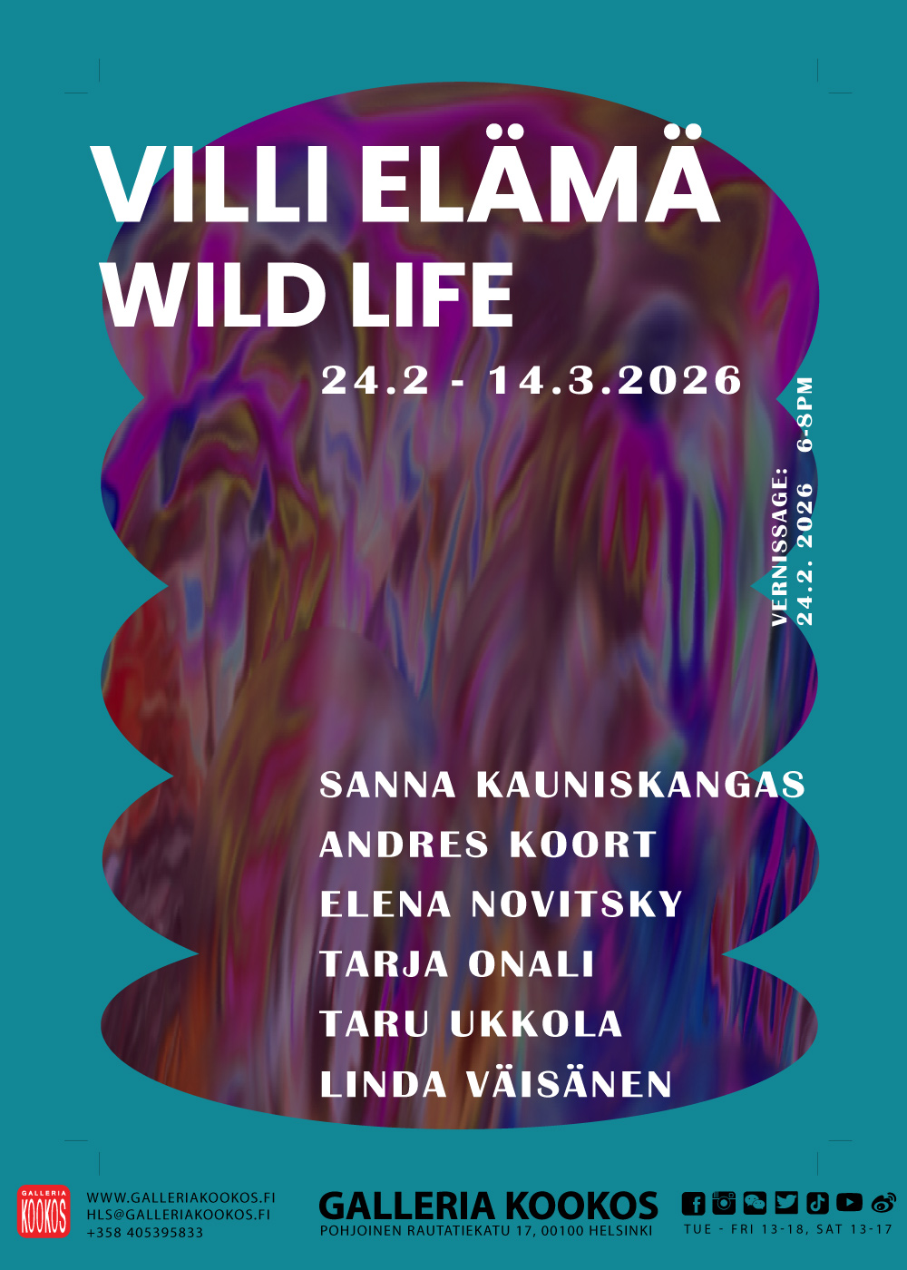 Galleria KookosVilli Elämä- Wild Life24.2-14.3.2026Vernissage 24.2.2026 6-8pm Elämämme on kuin...